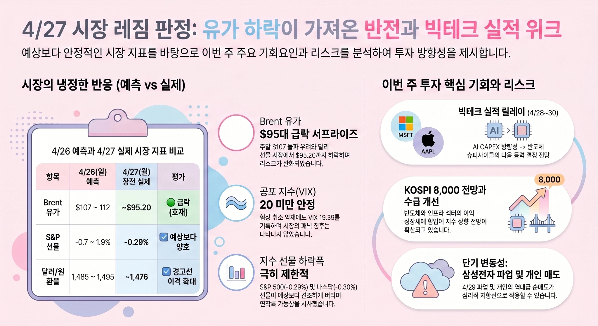 항목 | 4/26(일) 예측 | 4/27(월) 07:00 KST 실제 | 평가 |